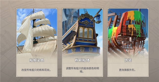 你可以对船帆染色、换花纹、印上自己的纹章,还能局部粉刷船体——是走皇家海军的威严风,还是加勒比海盗的暗黑系,全看你的审美。